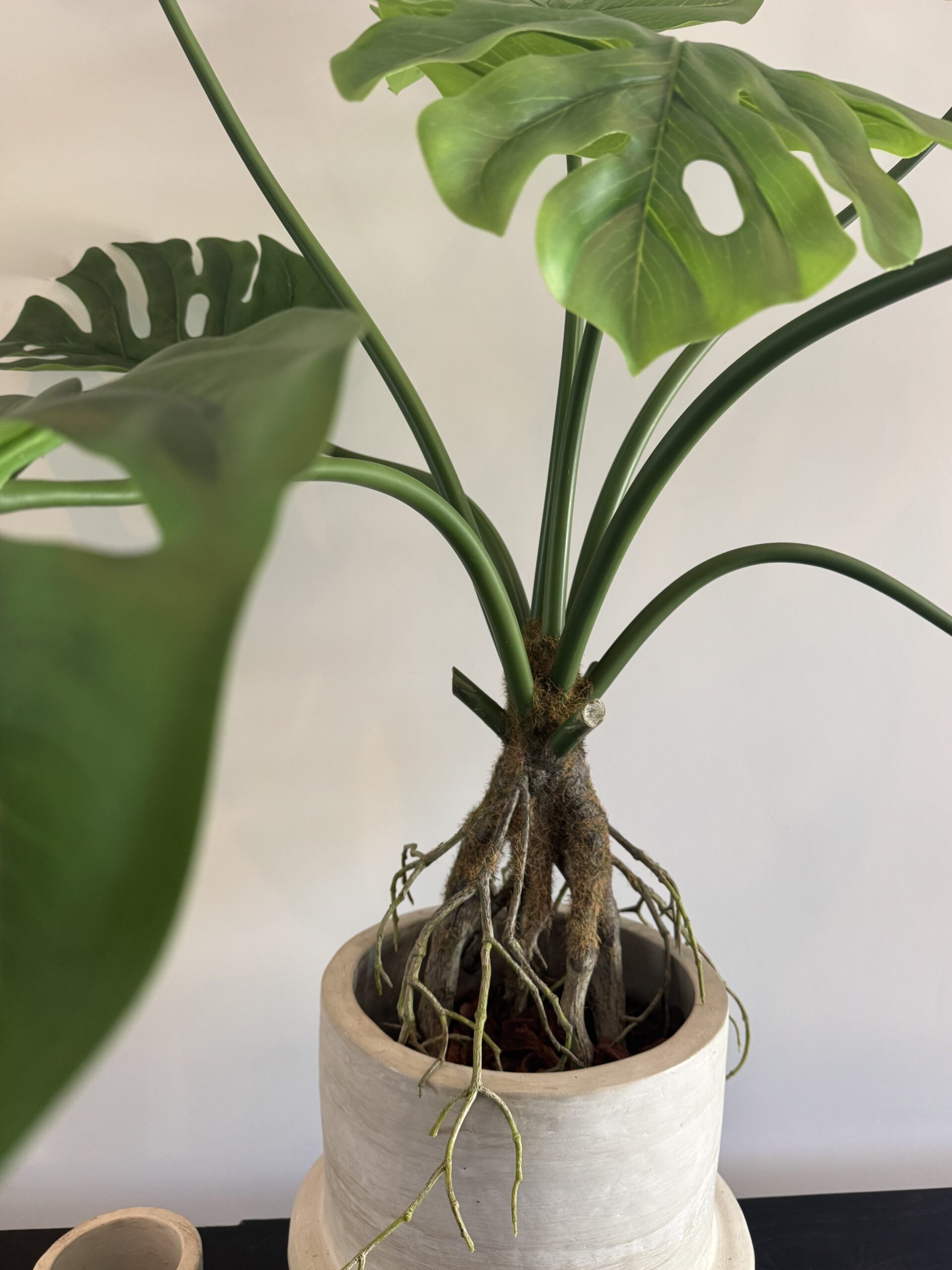 Breng tropische flair in huis met deze zijden Monstera van 90 cm. De herkenbare, diep ingesneden bladeren zijn met zorg nagemaakt en geven een frisse, levendige uitstraling aan elke ruimte. Compact van formaat, maar vol van vorm – ideaal voor op de vloer, een lage kast of een grote plantentafel.